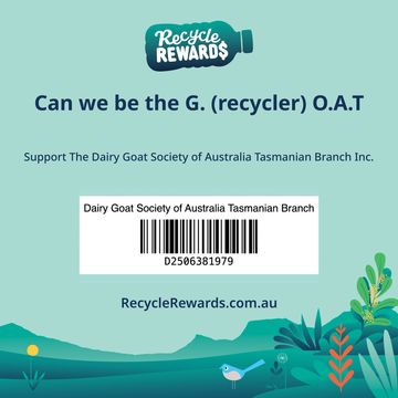 Scan our code when you recycle and help us raise funds for the Dairy Goat Society of Australia Tasmanian Branch
